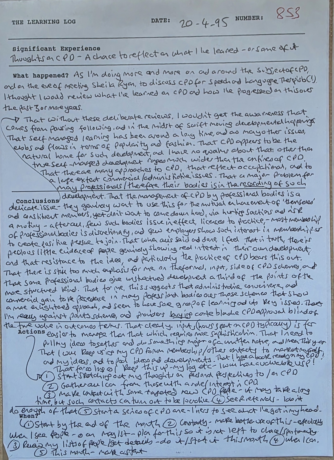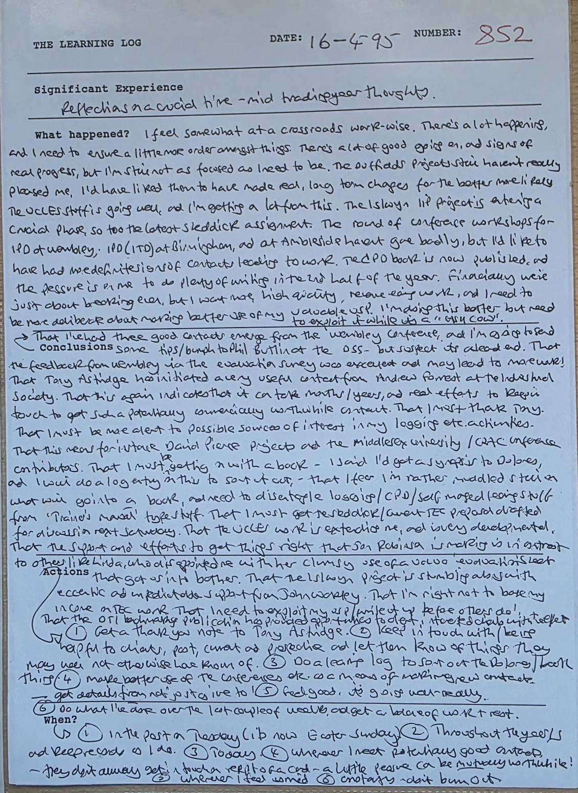 In February 1987 I wrote my first learning log, and the most recently completed was number 2,342.