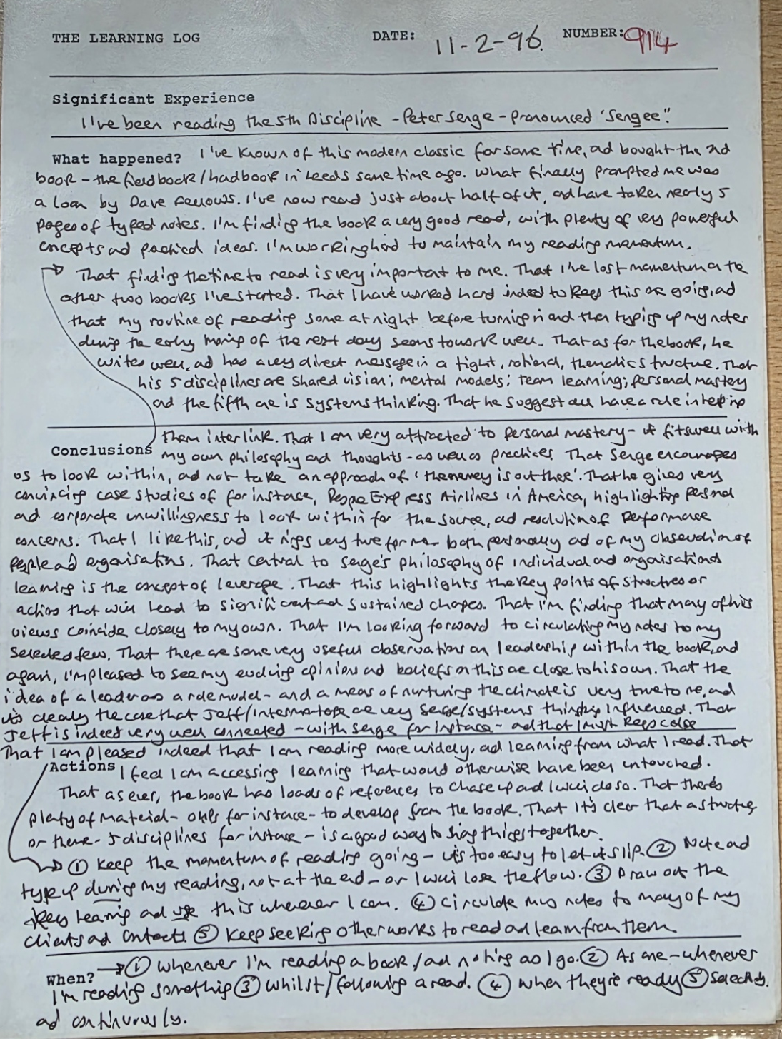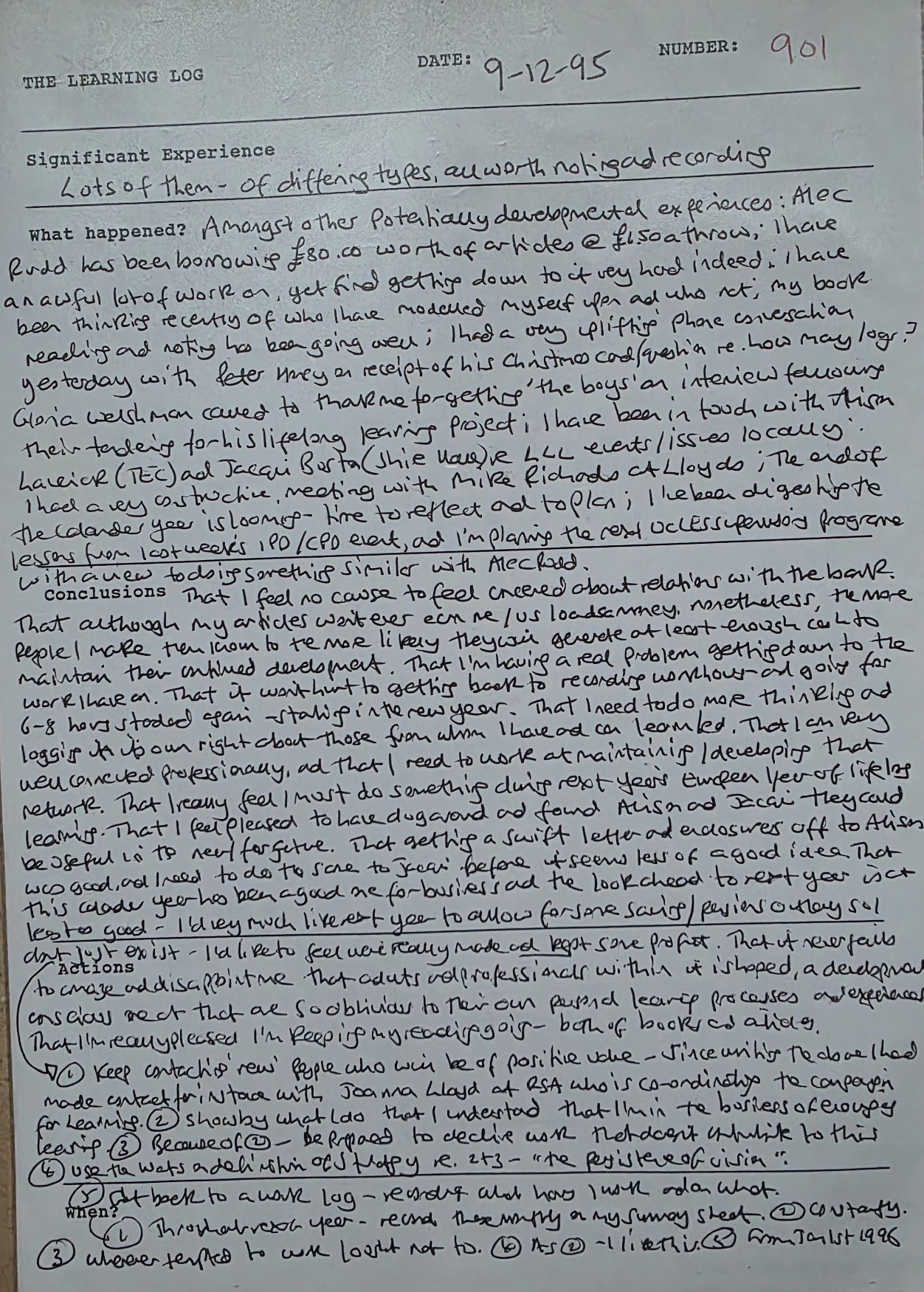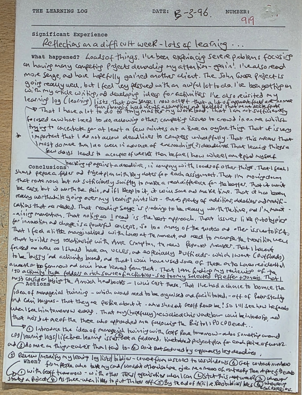 In February 1987 I wrote my first learning log, and the most recently completed was number 2,342.