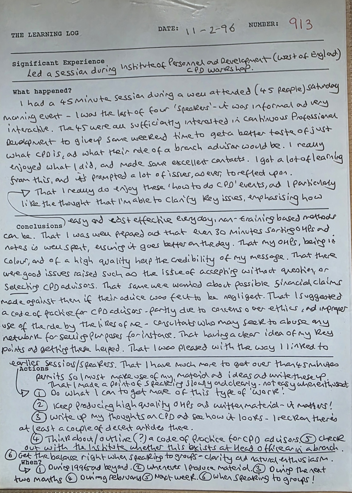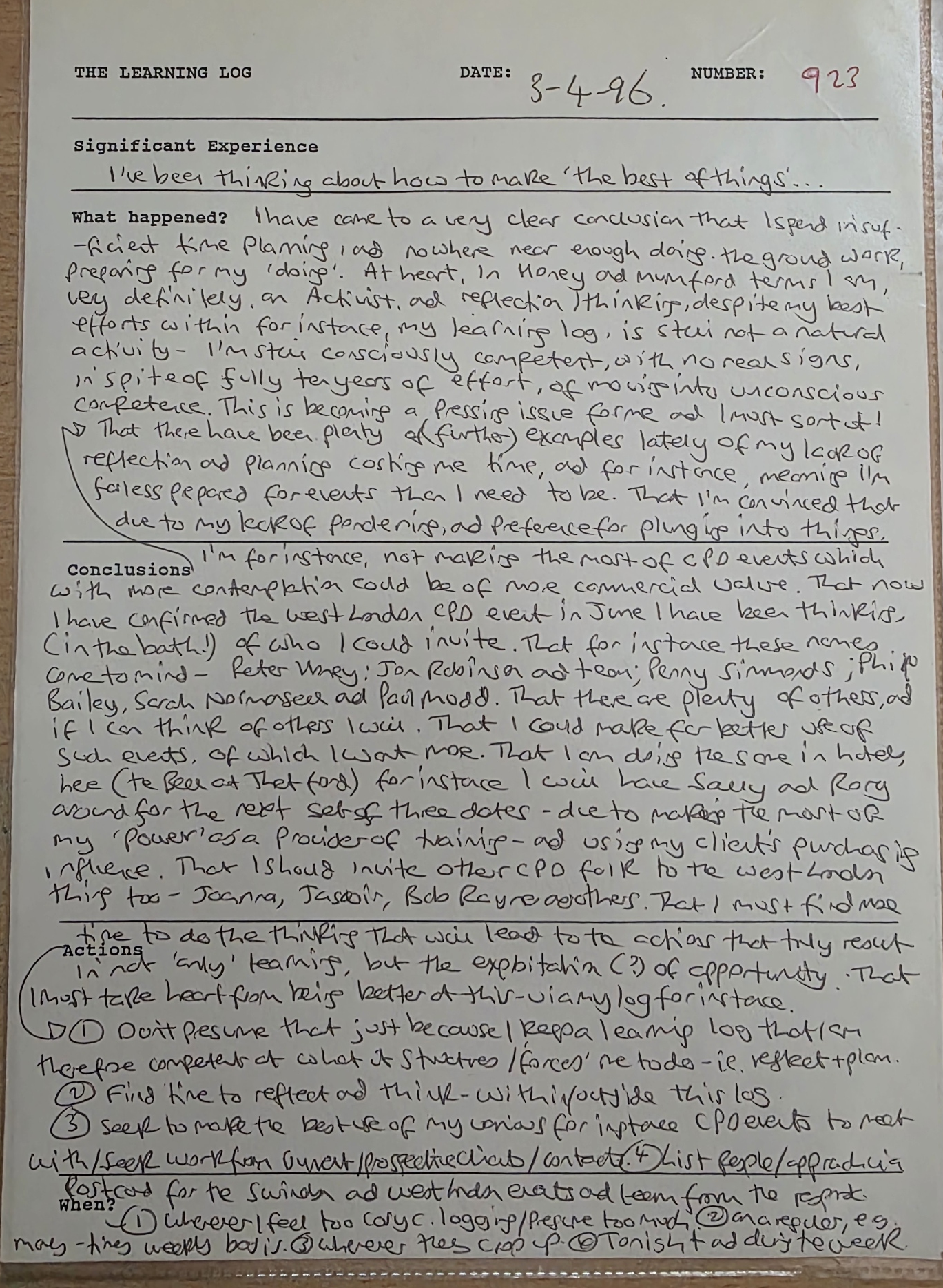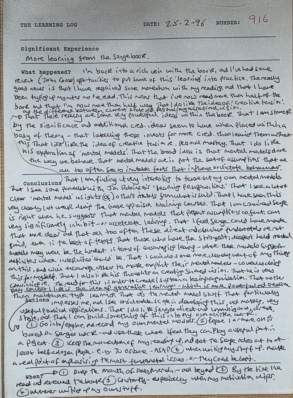In February 1987 I wrote my first learning log, and the most recently completed was number 2,342.